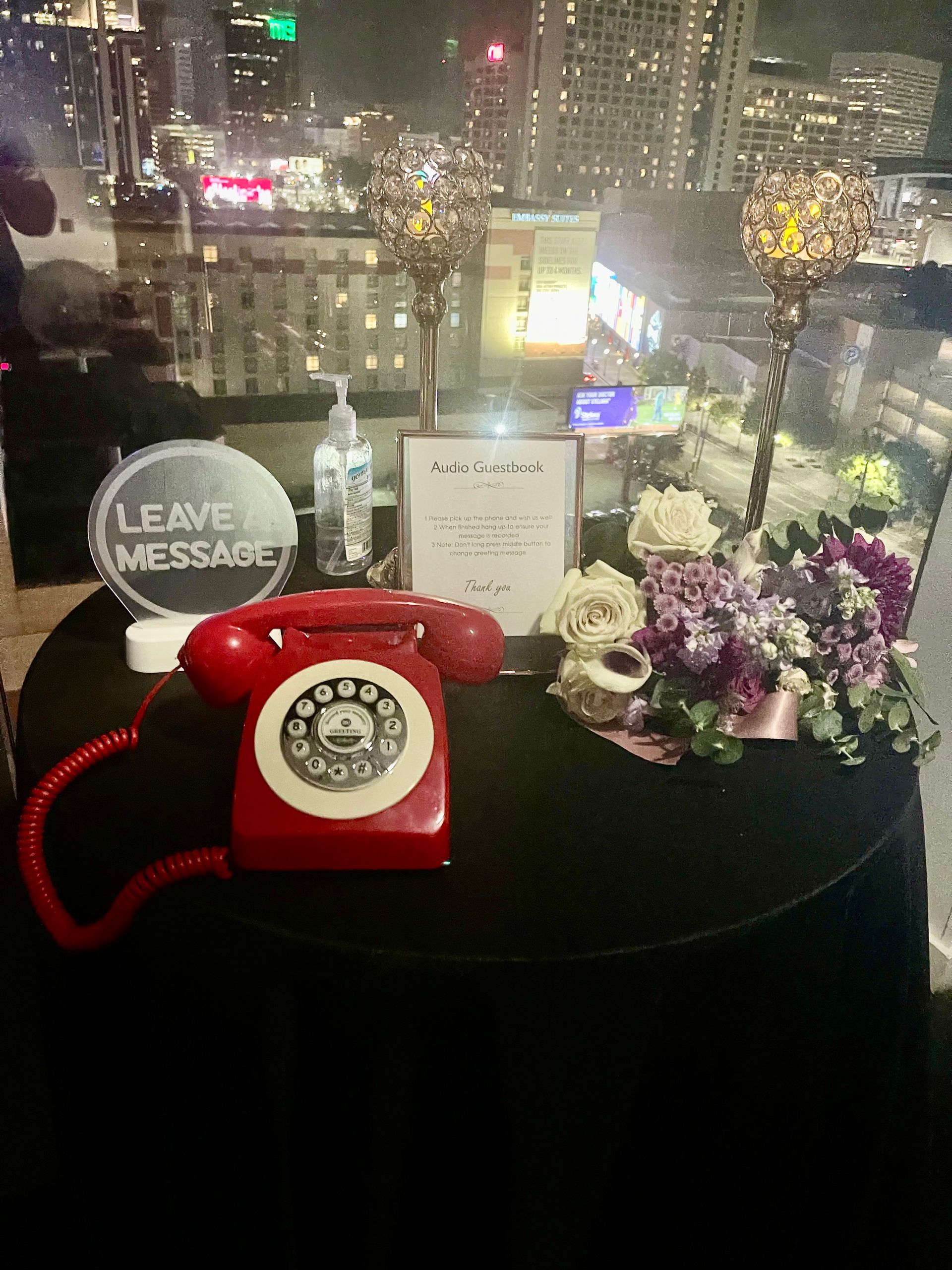 Audio guest book is an alternative option to a the stand guest book. You're guest would simply pick up the phone and after your greeting, leave you a voicemail message that your can cherish for a life time.